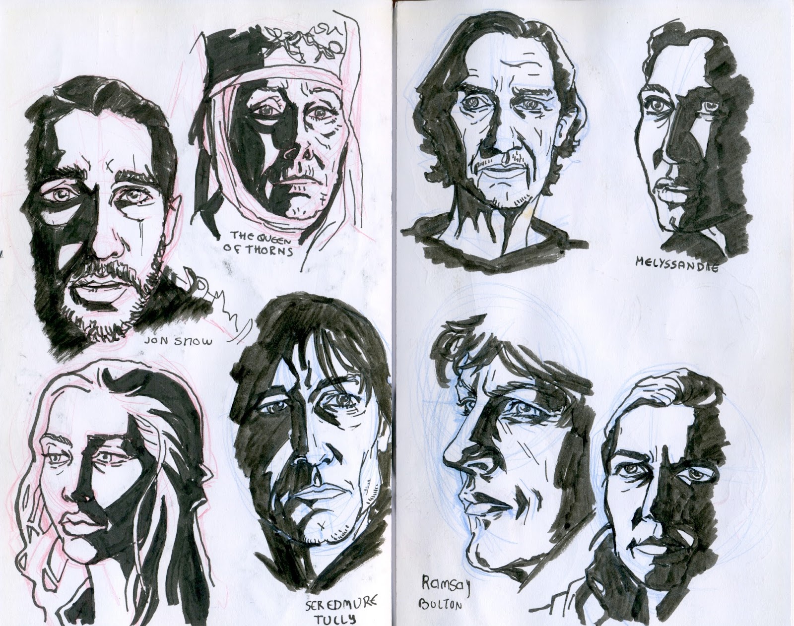 Quick doodles with a Sailor fountain pen watching GoT