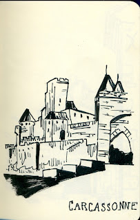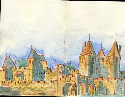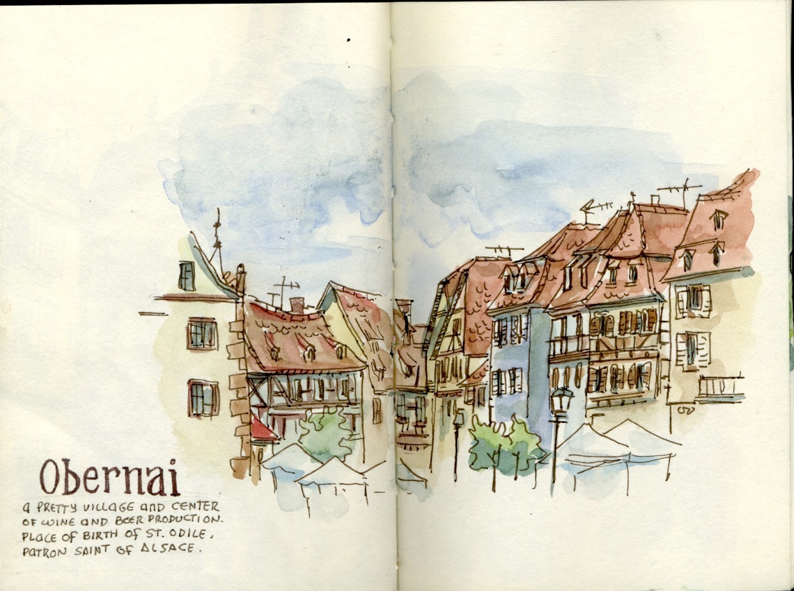 Yet another of these pretty villages in Alsace. Stillman & Birn gamma and Schmincke watercolors (and a nice cup of green tea, too)