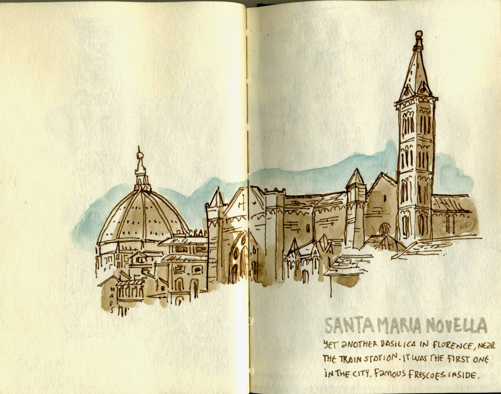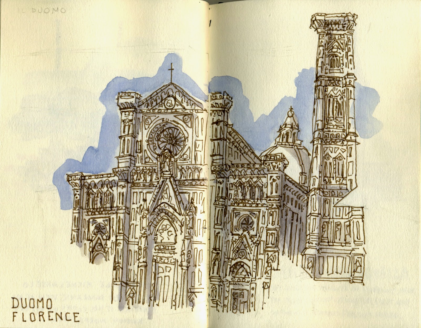 Il Duomo de Firenze at night. Stillman & Birn pocketbook and Cotman watercolors (and a lemonade in a coffee shop around the corner)