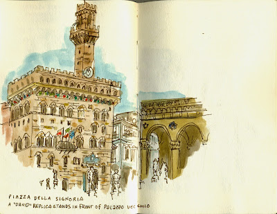 A couple of extracts from my very first travel sketchbook, (too many) years ago. Genoa in Italy. An interesting month ...