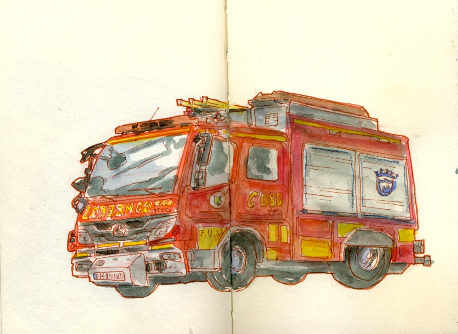 We went to draw yesterday to the Firefighters station at Martiricos (Malaga) and they've got the coolest old Benz truck stationed there. And, of course, a bunch of new ones, but they keep coming and going, so one has got to be fast (or lucky) to draw them in a go. Stillman & Birn gamma A5 and Pitt Sanguine