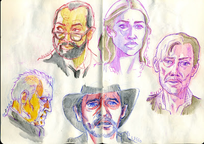 Some BIC ballpen portraits of the cast of HBO Westworld I did while watching the series. Love it, BTW, great plot and robots!