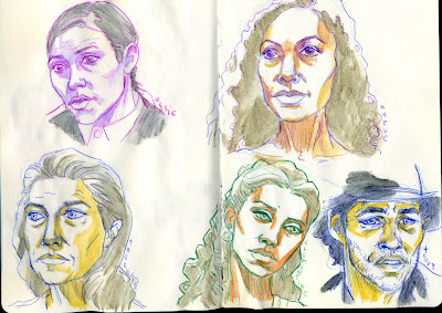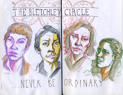 Quick doodles from TV. The Bletchley Circle Season 2 is not as good as season 1, but it's ok. I did not like much WPC 56, though